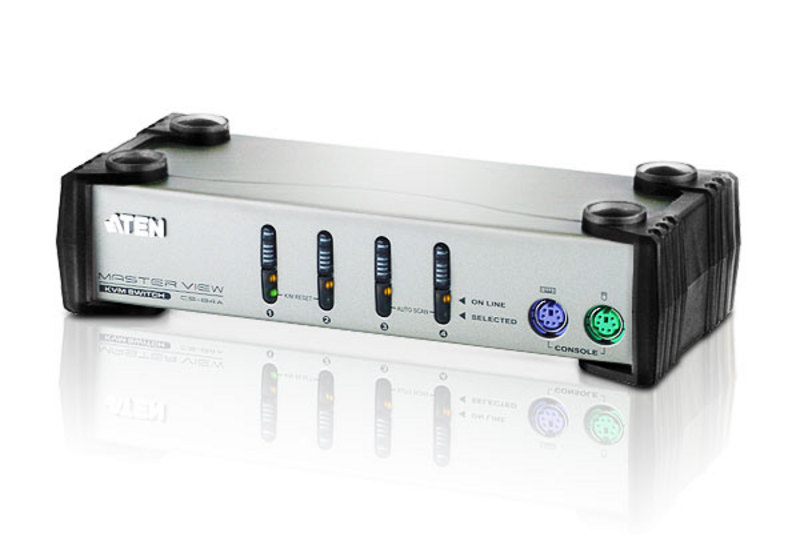 4-портовий PS/2 KVM-перемикач, в комплекті 2 кабелі по 1,2 м. та 2 кабелі по 1,8 м., без БЖ