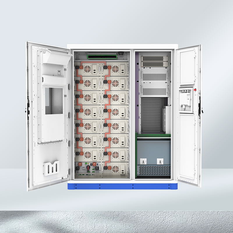 - Система накопичення енергії батареї складається з високовольтної шафи та батарейних модулів;