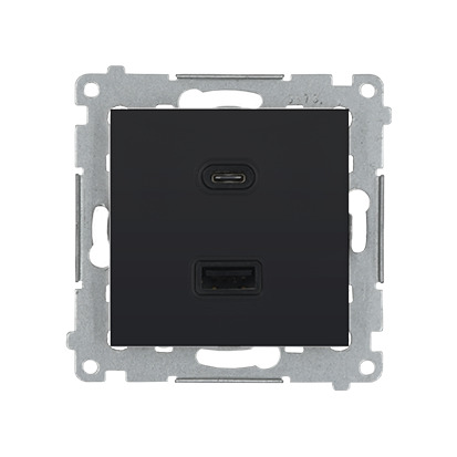 Зарядний пристрій 2хUSB тип A+С 5/9/12V (3.1A 5V), Simon54, чорний матовий (DEC2CA.01/49)