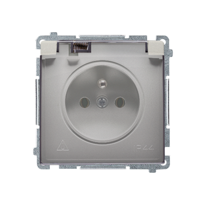 Розетка электрическая Basic с заземлением French с прозрачной крышкой IP44, сатин (BMGZ1B.01/29A)