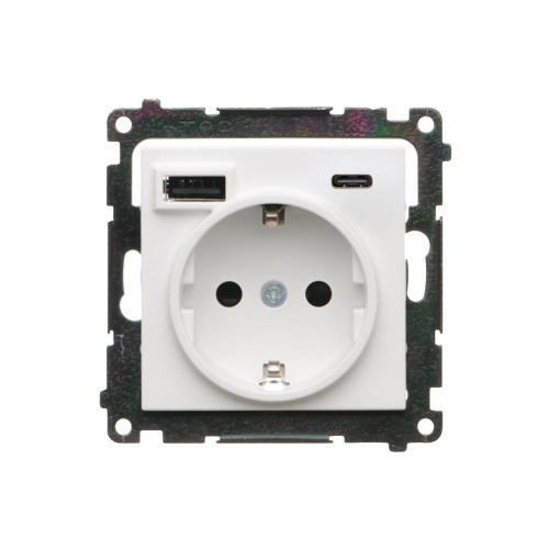 Розет електр Schuko 16A та заряд пристр USB C+A 2.1А, Simon55, білий матовий (TGSZ1ZUSB2CA.01/111)