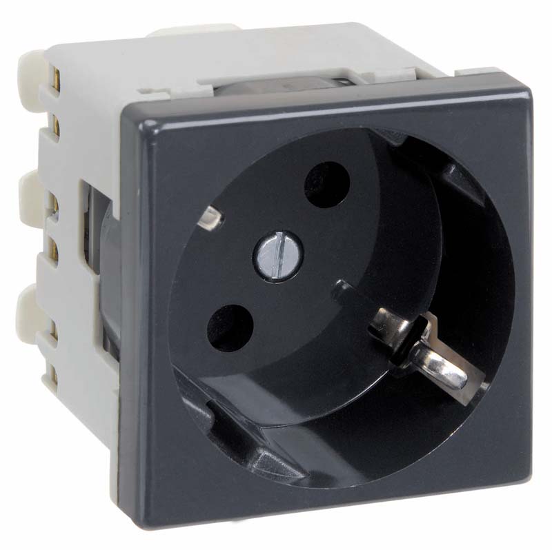 Розетка електрична 45х45 мм швидкого монтажу із заземленням Schuko, чорний (K11/14)