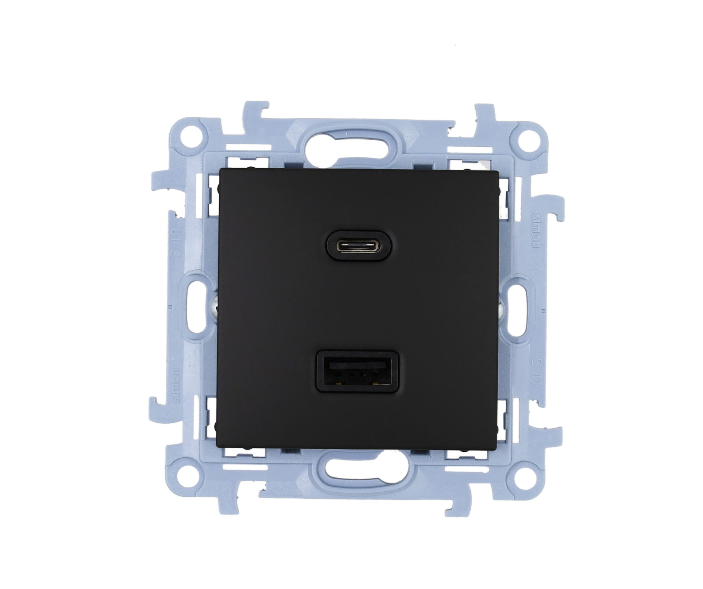 Зарядний пристрій 2хUSB тип A+С 5/9/12V (3.1A 5V), Simon10, чорний матовий (CEC2CA.01/49)