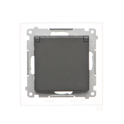 Розетка електрична Simon55 з замл. SCHUKO зі шторк, IP44 з кришкою, чорний матовий (TGSZ1BCZ.01/149)