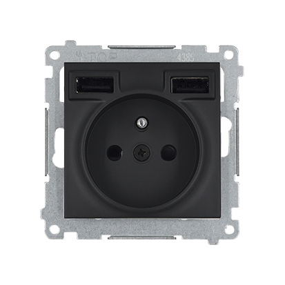 Роз ел зазем French 16A 250V,заряд пристр 2хUSB A+A 2.1А 5V, Simon54, чорн матов (DGZ1ZUSB2AA.01/49)
