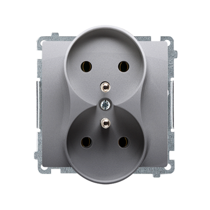 Розетка електрична Basic подвійна с заземленням FRENCH, сталь inox