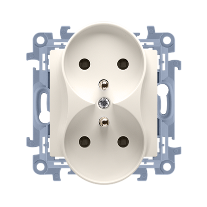 Розетка электрическая SIMON10 двойная, заземление French, кремовый цвет (CGZ2M.01/41)