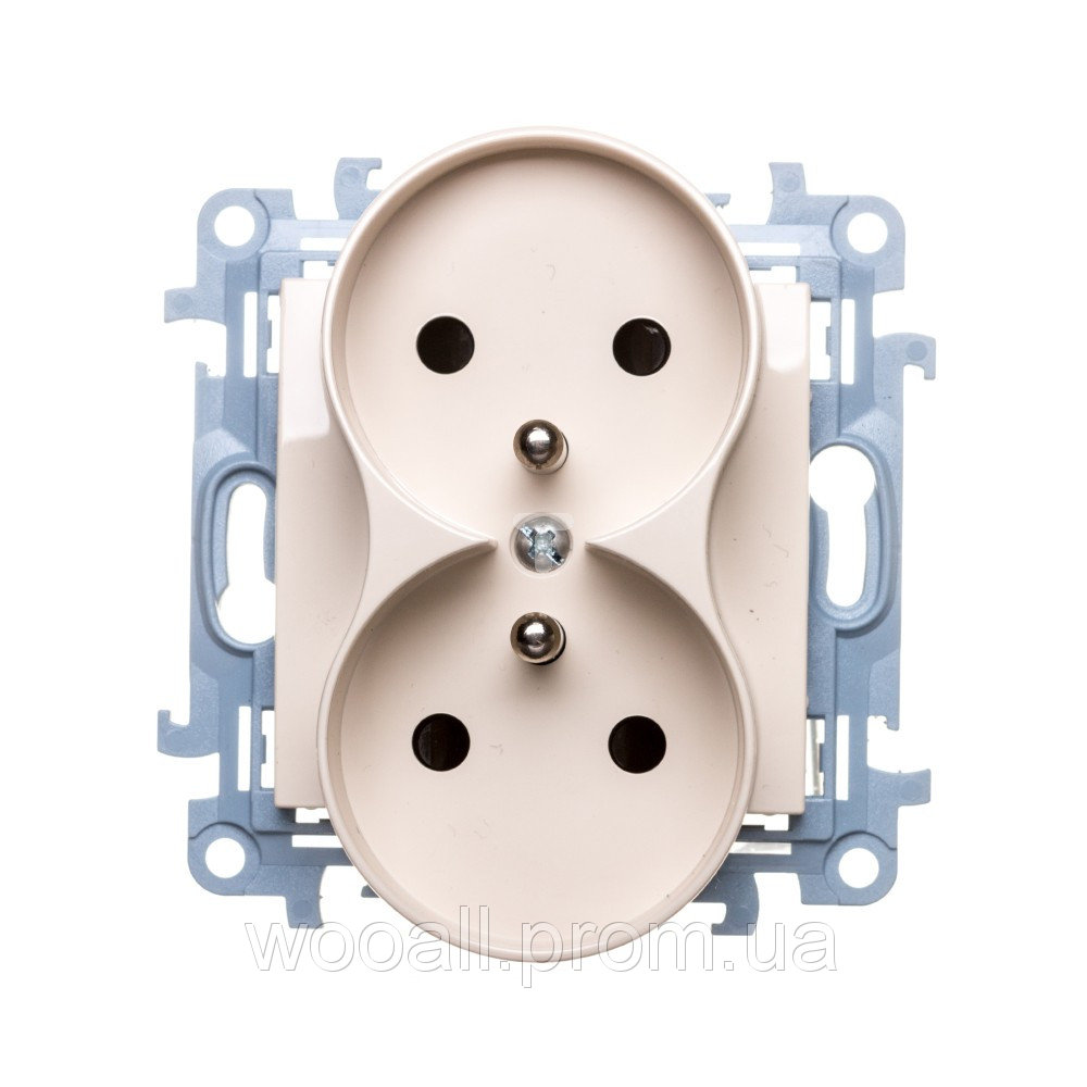 Розетка электрическая SIMON10 двойная, заземление French, со шторками, кремовый цвет (CGZ2MZ.01/41)
