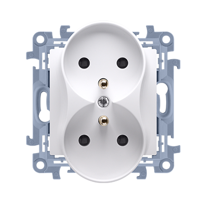 Розетка електрична SIMON10 подвійна з заземленням FRENCH, срібло (CGZ2M.01/43)