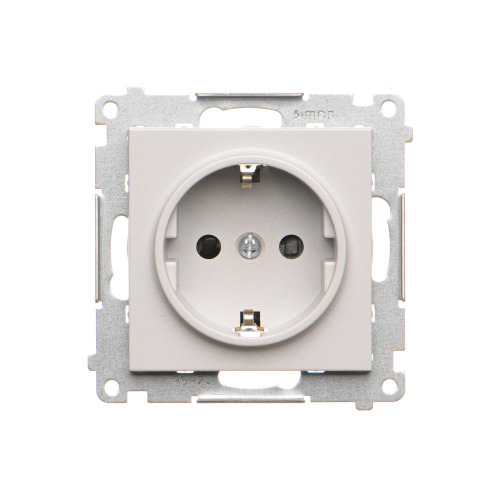 Розетка електрична Simon55 з замл. SCHUKO зі шторками, cвітло-сірий матовий (TGSZ1CZ.01/114)
