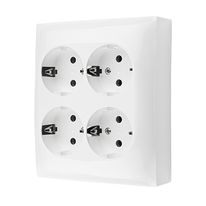Розетка електрична чотиримісна компактна із заземленням Schuko AQUACLICK IP20, білий