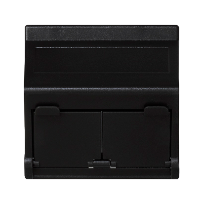 Модуль 45х45мм угловой для 2хRJ45 со шторками, черный (KB80/14)