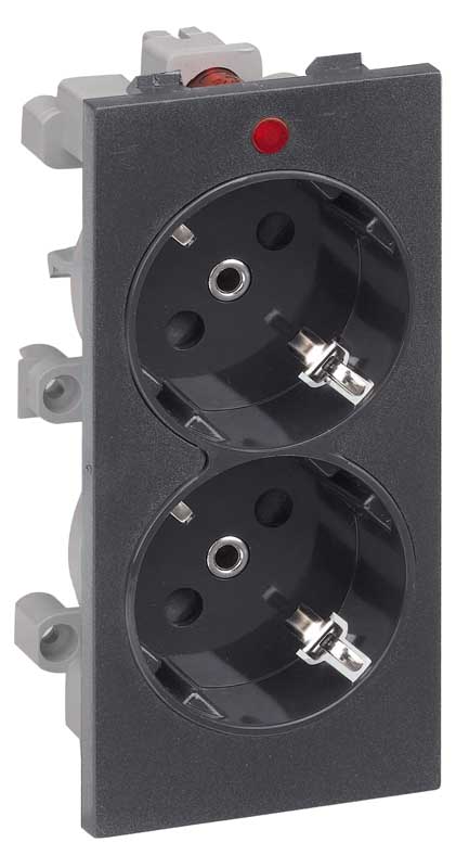S1/14 - Розетка електрична 107х52 подвійна, індикатор, чорна
