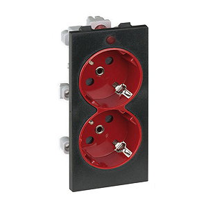 Розетка електрическая двойная серия CIMA, красная в черной рамке (S1/6/14)