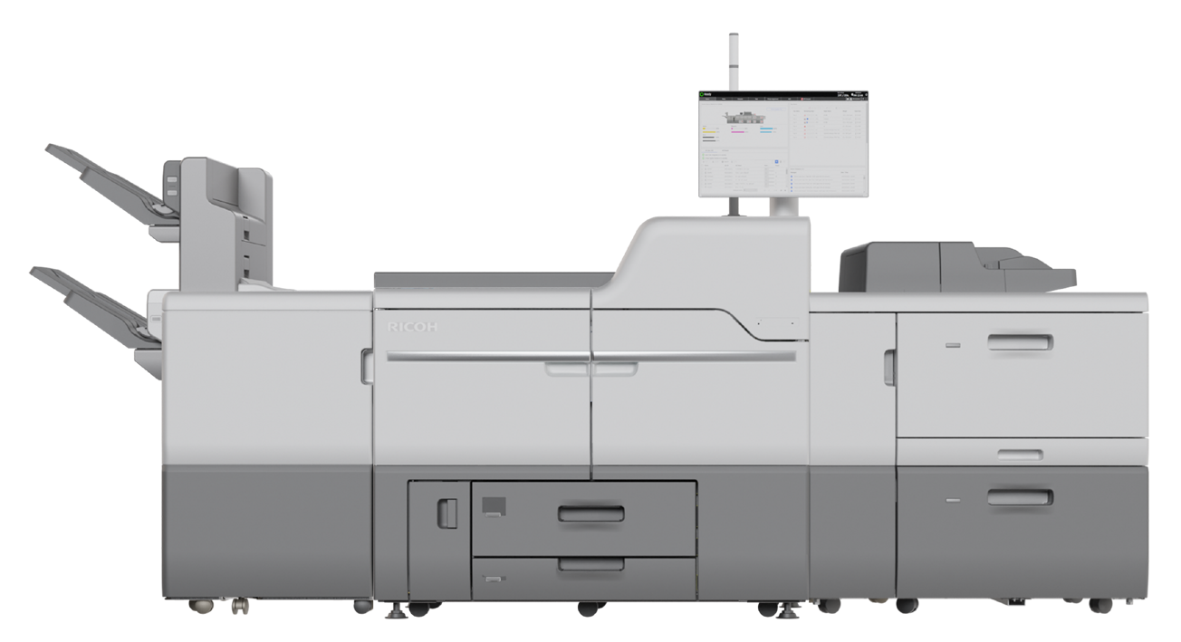 RICOH Pro C7500 — високопродуктивна цифрова машина створена для якісного друку з підвищеною продуктивностю. Інтуїтивно зрозуміла 21-дюймова інтелектуальна панель управління забезпечує ширше поле зору та можливість віддалено контролювати систему зі смартфона або планшета. Спеціальні тонери можна замінити менш ніж за 15 хвилин, мінімізуючи час простою. Вбудована автоматизація, як-от калібрування кольору, реєстрація front-to-back і автоматичний двосторонній друк до 330 × 1030 мм, забезпечує безперебійну роботу операторів будь-якого рівня кваліфікації.