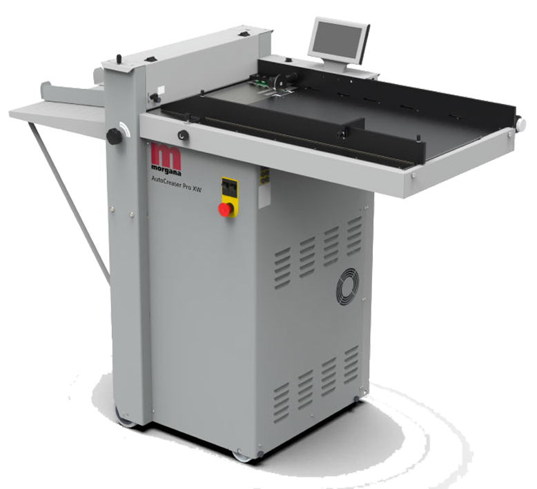 Повністю автоматизований професійний бігувальник Morgana AutoCreaser Pro XW розроблений для усунення проблеми розтріскування, яка виникає під час фальцювання цифрових відбитків. Він однаково ефективний при бігуванні як звичайного паперу, так і ламінованого або матеріалів з перехресним напрямком волокон.