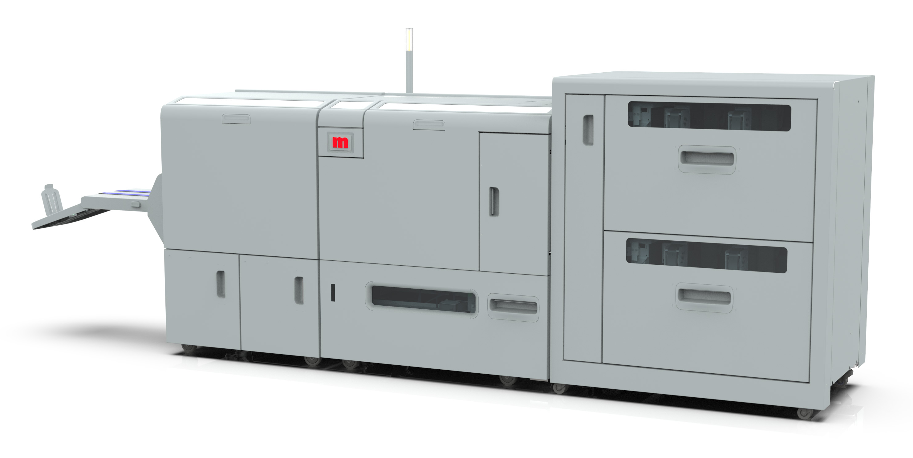 Стандартна комплектація передбачає лише ручне подавання матеріалу, але всі чотири системи можна обладнати потужним вакуумним автоподавачем VFX з двома касетами, кожна з яких вміщує стопу до 2 700 аркушів щільністю 80 г/м2. Крім того, на машини цієї серії можна встановити модуль біговання і бічної підрізки CST, який дозволяє отримувати буклети без необхідності використання гільйотинних різаків.