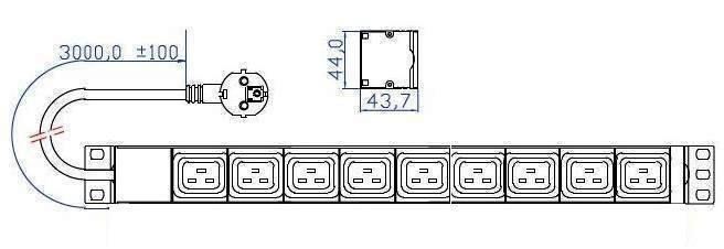 Блок розеток 19 1U 9хС19, шнур с вилкой Schuko