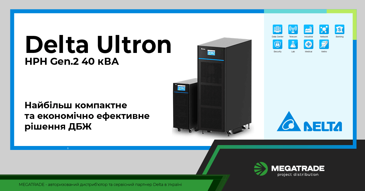 Новинка від Delta Electronics вже в Києві! Трифазні джерела безперебійного живлення (ДБЖ) Delta з оновленої серії Ultron HPH Gen. 2 до 40 кВА є в наявності на складі Мегатрейд у Києві та доступні для партнерів.