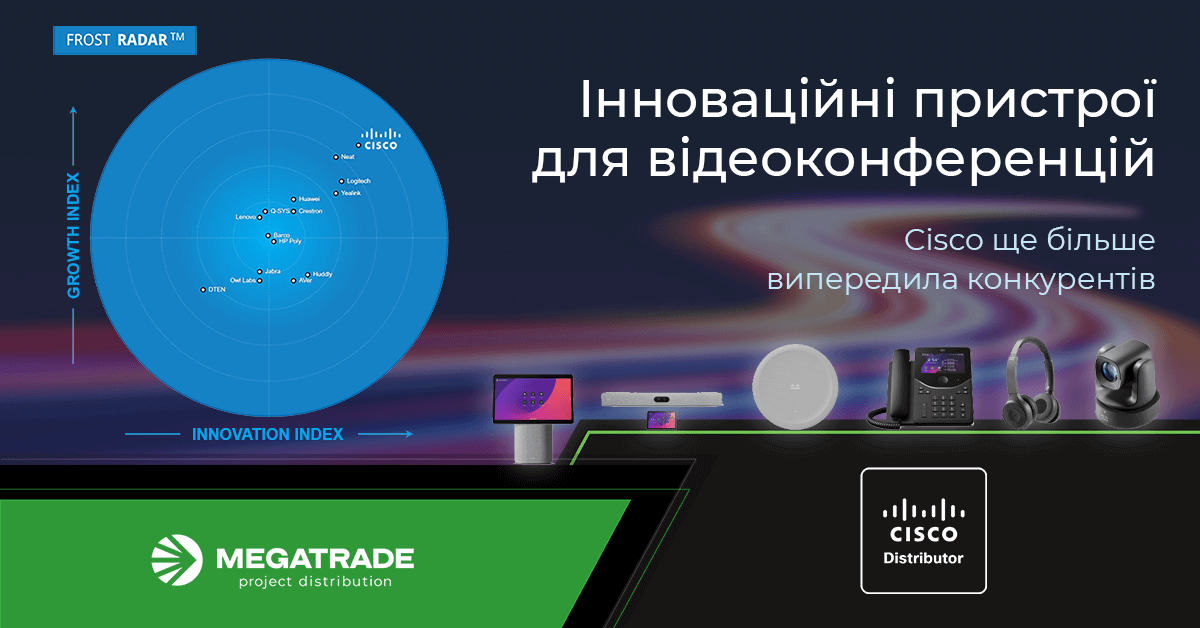 Консалтингова фірма Frost & Sullivan другий рік поспіль визнала Cisco безперечним лідером у галузі пристроїв для проведення відеоконференцій у переговорних кімнатах і присвоїла вендору найвищу позицію в рейтингу за інноваційність і зростання. Про це йдеться у звіті компанії Frost Radar 2025. Водночас Cisco не лише зберегла перше місце, а й іще більше відірвалася від конкурентів. Це означає, що команда компанії перетворює обіцянки клієнтам на реальні досягнення і пропонує продукти, які підвищують ефективність співпраці всіх сторін.