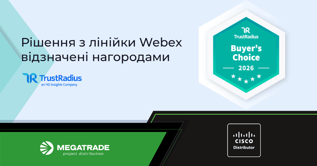 Компанія Cisco рада повідомити, що цілий ряд рішень із лінійки Webex — Webex App, Webex Calling, Webex Contact Center, Webex Meetings, Slido та Webex Webinars — були відзначені окремими нагородами TrustRadius 2026 Buyer’s Choice Awards.